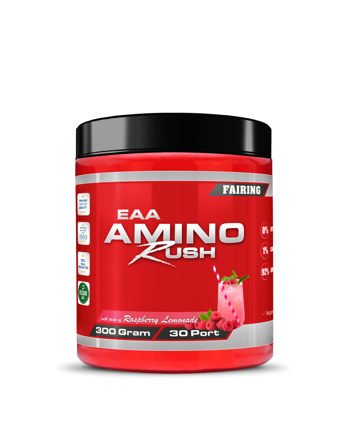 Fairings Amino Rush är ett koncentrat av fria, essentiella aminosyror (EAA) av högsta renhetsgrad med ett extremt snabbt upptag i kroppen. Intag av essentiella aminosyror kan stimulera din muskeluppbyggnad och återhämtning under och efter ett hårt träningspass.